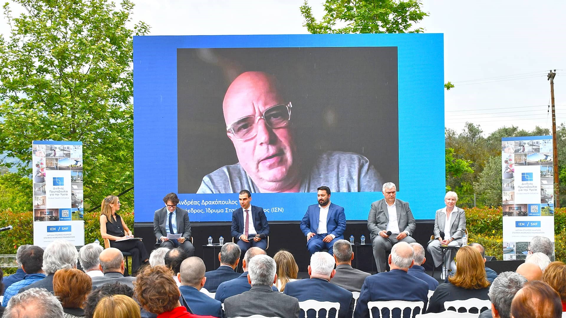 Στη συζήτηση συμμετείχε ο Υφυπουργός Υγείας, κ. Μάριος Θεμιστοκλέους, ο οποίος υπογράμμισε το πνεύμα καλής συνεργασίας και τη δέσμευση του Υπουργείου Υγείας για τήρηση των υποχρεώσεών του, με μοναδικό γνώμονα τη διασφάλιση της ομαλούς ολοκλήρωσης του έργου. Στο πάνελ συμμετείχαν επίσης εκ μέρους του ΙΣΝ, ο Διοικητικός Διευθυντής του ΙΣΝ, κ. Πάνος Παπούλιας και η εκπρόσωπος της Διεύθυνσης Δωρεών του ΙΣΝ, κα. Ελιάννα Κονιάλη, καθώς επίσης ο Εντεταλμένος Σύμβουλος του Ομίλου ΑΒΑΞ, κ. Αντώνης Μιτζάλης, ο Διευθυντής του Έργου, κ. Δημήτρης Χασάπης και η Υποδιευθύντρια της Hill International, κα. Σύλβια Τσιτζιλώνη. Μετά την ολοκλήρωση της παρουσίασης δόθηκε η ευκαιρία στο κοινό να θέσει ανοιχτά τις ερωτήσεις του, οι οποίες απαντήθηκαν από τους εκάστοτε αρμοδίους, ενώ ο κ. Ανδρέας Δρακόπουλος έκανε παρέμβαση, εκφράζοντας την τοποθέτησή του σχετικά με τη σημασία του να κοιτάζουμε ως κοινωνία μπροστά, και συγκεκριμένα τις θετικές εξελίξεις που επιφυλάσσει το μέλλον.