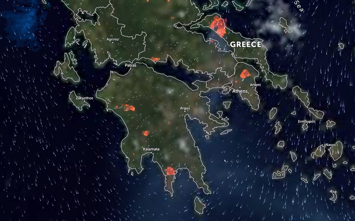 Δείτε τα πύρινα μέτωπα όπως καταγράφονται από τον δορυφόρο κλικ εδω