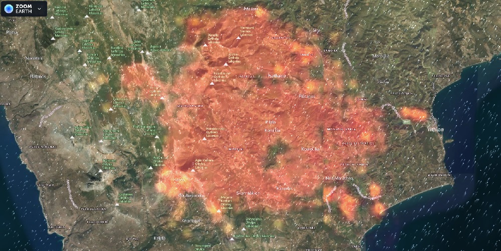 Δείτε μέσα από τον διαδραστικό χάρτη του zoom Earth την πορεία των πυρκαγιών στην χώρας μας.