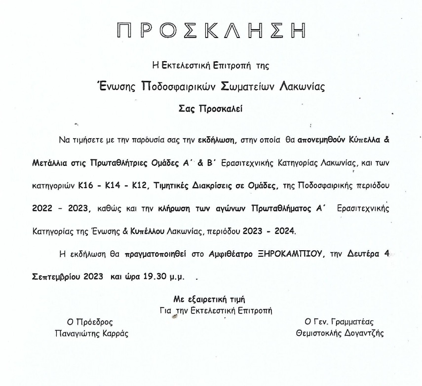 Η κλήρωση των Πρωταθλημάτων ΕΠΣ Λακωνίας