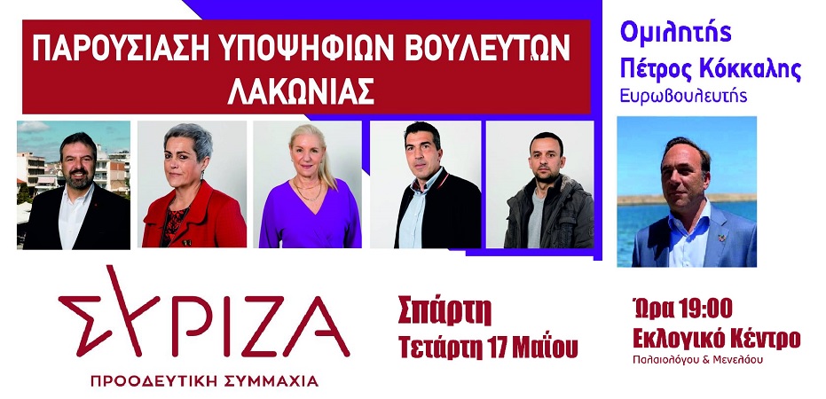 Κεντρική προεκλογική συγκέντρωση του ΣΥΡΙΖΑ στη Σπάρτη – Παρουσίαση Υποψήφιών