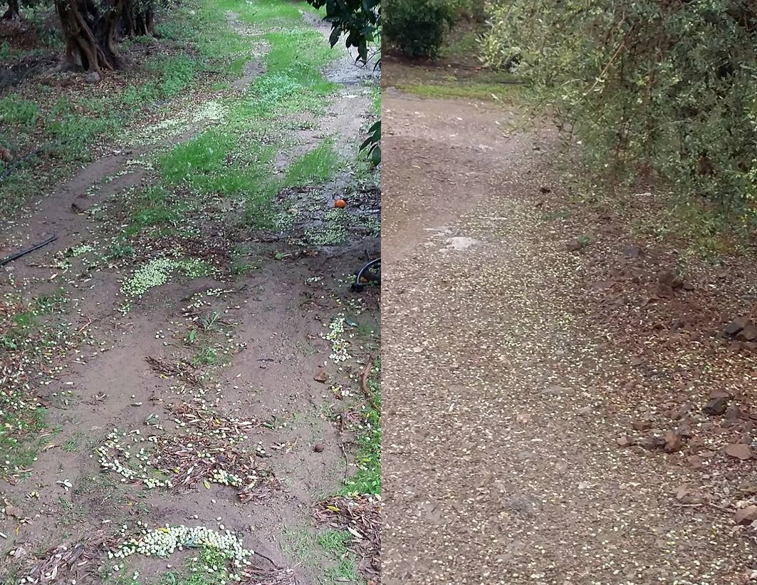 Η κακοκαιρία έχει προσβάλει κατα τόπους σε μεγάλο βαθμό τον καρπό της ελιάς βλέποντας με τον φωτογραφικό φακό την μεγάλη καρπόπτωση.