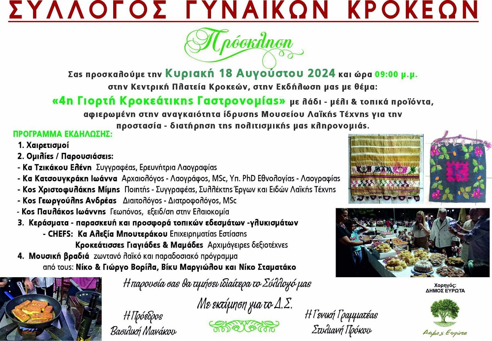ΠΡΟΓΡΑΜΜΑ ΠΑΝΕΛΛΑΔΙΚΗΣ ΠΟΛΙΤΙΣΤΙΚΗΣ ΓΙΟΡΤΗΣ ΤΟΥ ΓΕΩΡΓΟΥ ΚΑΙ ΤΟΥ ΚΤΗΝΟΤΡΟΦΟΥ 2024 Ημέρα Πρώτη Σάββατο 10 Αυγούστου, 18:00-20:00 μ.μ. Συνεδριακό Κέντρο Λεήμονα Λακωνίας -Πανελλαδικό Συνέδριο με θέμα «Το Αύριο της Γεωργίας και της Κτηνοτροφίας στην Ελλάδα», με αντικείμενο την τοπική ανάπτυξη στην αγροτική ύπαιθρο, με ομιλητές από όλη την Ελλάδα που θα παρουσιάσουν εφαρμοσμένες αγροτικές πρακτικές με […]