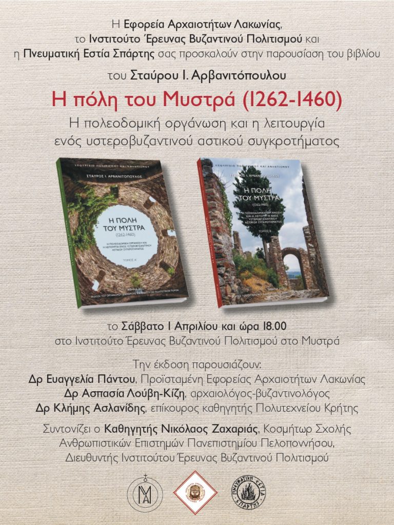 03.31.23 - Παρουσίαση του βιβλίου του Σταύρου Ι. Αρβανιτόπουλου «Η πόλη του Μυστρά (1262-1460)