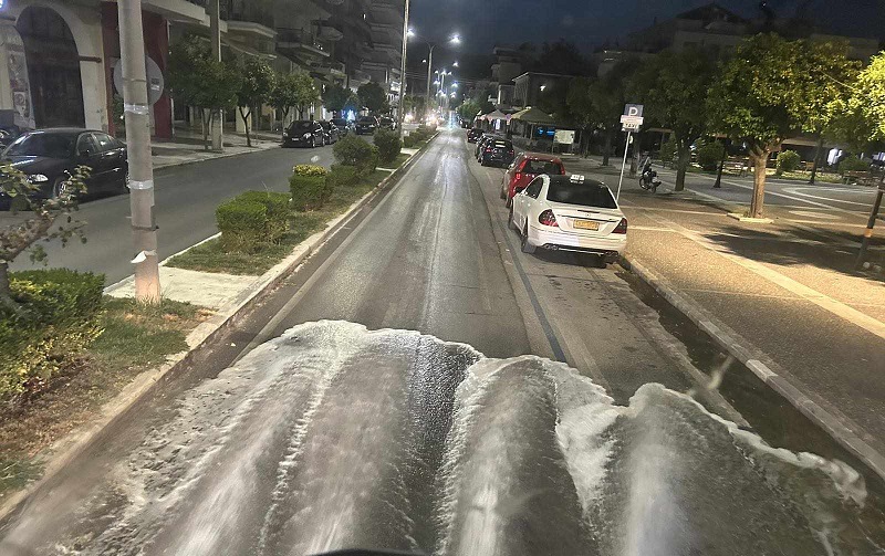07.23.23 - Από νωρίς το πρωί ο δροσισμός της Σπάρτης από τον Δήμο μέσα στην πόλη.