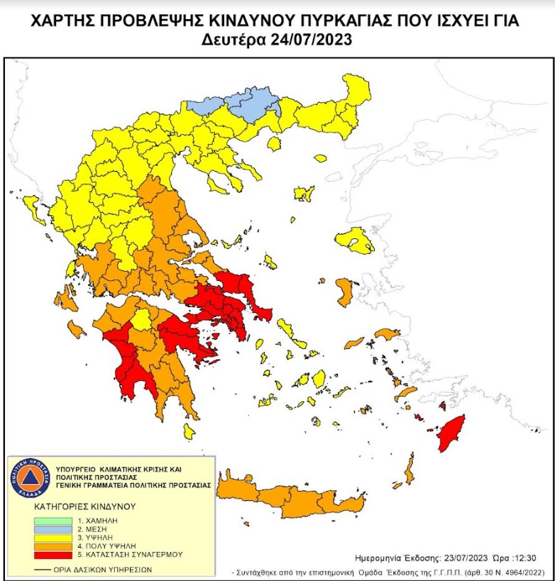 07.23.23 - Υψηλός Κίνδυνος Πυρκαγιάς την Δευτέρα στην Λακωνία – Χάρτης