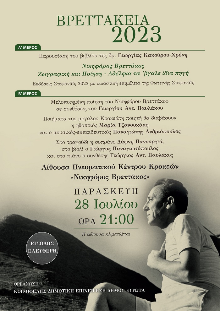 07.24.23 - Πολιτιστικό διήμερο 28-29 Ιουλίου στις Κροκεές για τον Νικηφόρο Βρεττάκο