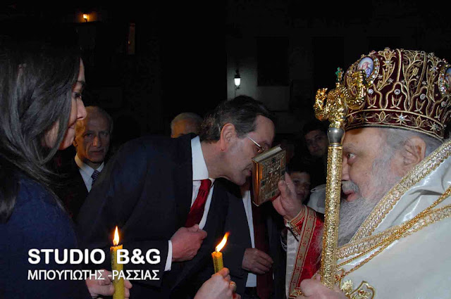 Στο Ναύπλιο έκανε Ανάσταση, ο πρόεδρος της ΝΔ Αντώνης Σαμαράς μαζί με την γυναίκα του και πιο συγκεκριμένα στον Μητροπολιτικό ναό του Αγίου Γεωργίου . Μαζί με τον Σαμαρά ήταν και ο υφ/γος ΠΕΚΑ Ιωάννης Μανιάτης ,ο βουλευτής της ΝΔ Ιωάννης Ανδριανός ,ο δήμαρχος Ναυπλίου Παναγιώτης Αναγνωσταράς ,ο πρόεδρος του Εργατικού κέντρου Ναυπλίου Ραφαήλ Μπαρού. Την Αναστάσιμη λειτουργία τέλεσε ο Μητροπολίτης Αργολίδος κ. Ιάκωβος.