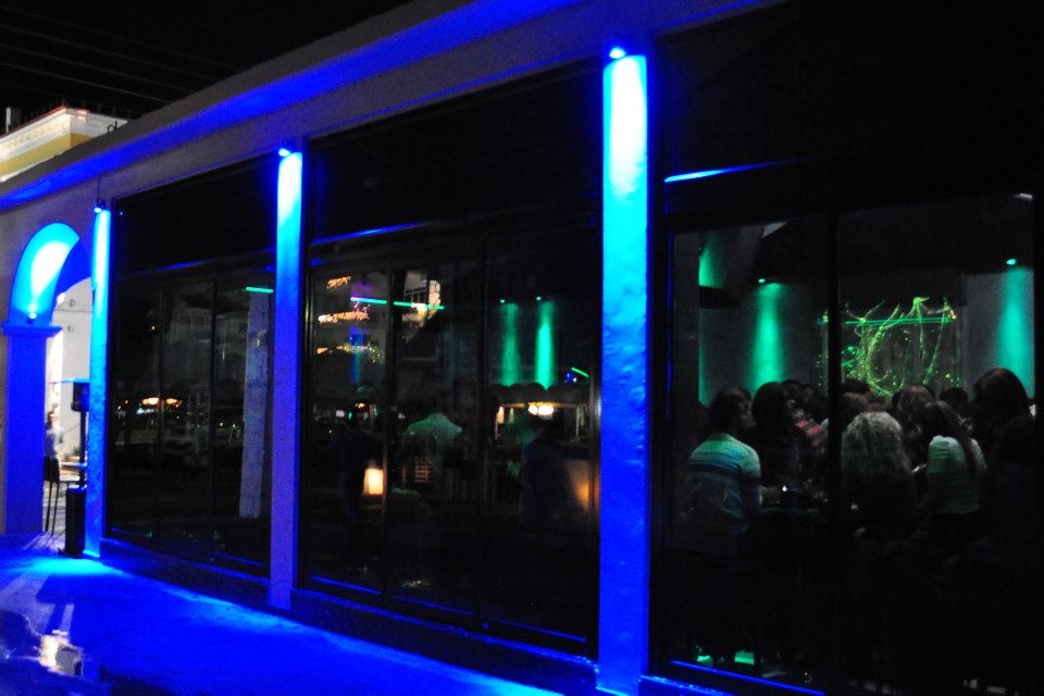 Το Vitrine στην κεντρική πλατεία Σπάρτης πίσω από το παλαιό Δημαρχείο λουσμένο με πολύχρωμα φώτα και με γυαλί έδωσε το στίγμα του από την πρώτη μέρα στη νυχτερινή διασκέδαση της πόλης.