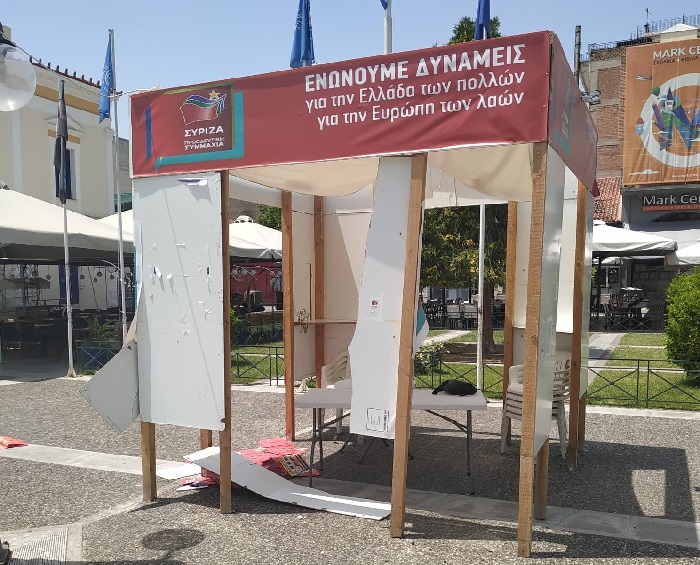 06.24.19 - Βανδάλισαν το εκλογικό περίπτερο του ΣΥΡΙΖΑ στην Πλατεία της Σπάρτης