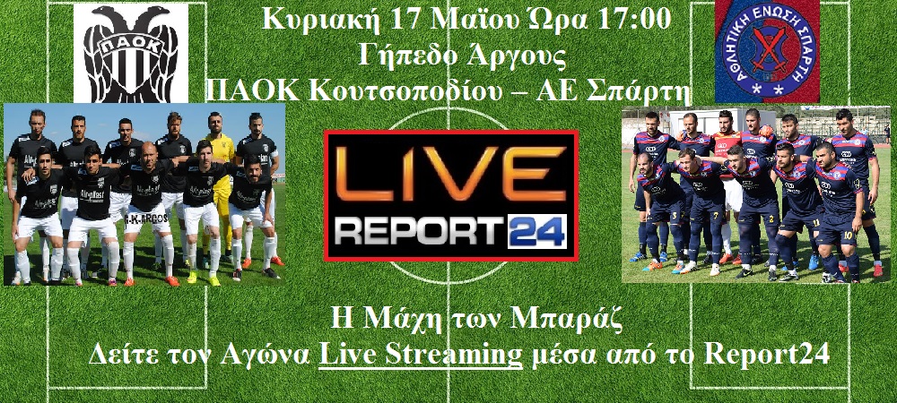 Παρακολουθήστε Ζωντανά μέσα απο το Report24 το παιχνίδι ΠΑΟΚ Κουτσοποδίου – ΑΕ Σπάρτη σε ζωντανή σύνδεση LIVE STREAMING…
