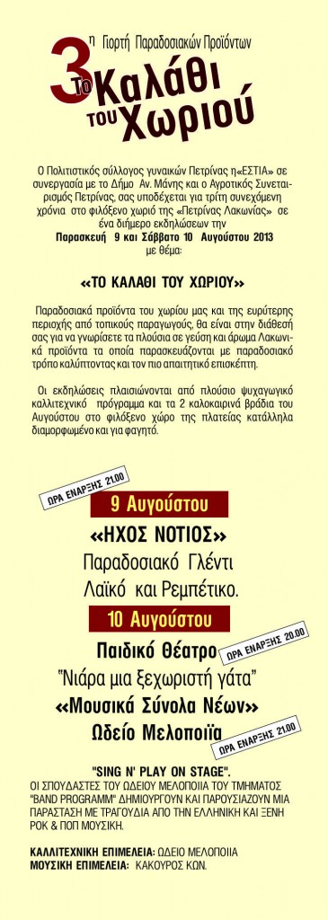08.06.13 - 9-10 Αυγούστου το 3ο Καλάθι του Χωριού στην Πετρίνα Λακωνίας