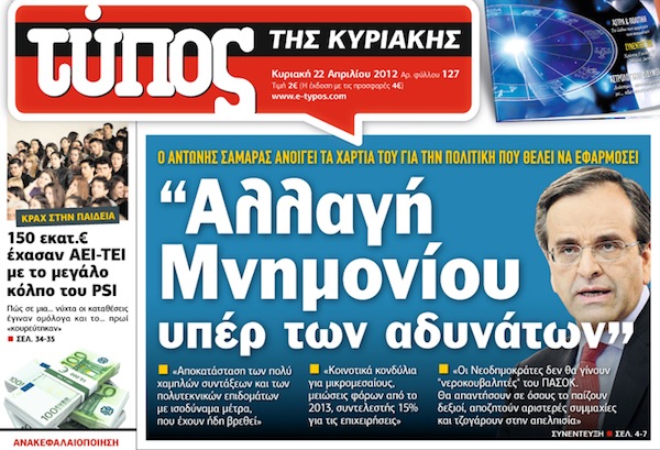 04.21.12 - Σαμαράς: Αλλαγή στο Μνημόνιο υπέρ των αδυνάτων