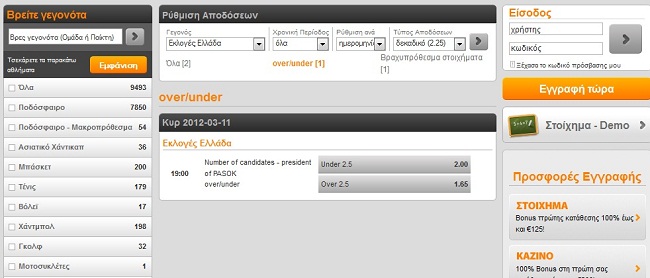 Βγήκε και αυτό. Στοίχημα κυκλοφορεί εδώ και μέρες στον ιντερνετικό αέρα για το πόσοι θα είναι οι υποψήφιοι στις εσωκομματικές εκλογές του ΠΑΣΟΚ που θα γίνουν το Μάρτιο. Οι bookmakers δίνουν το να είναι πάνω από 2 την απόδοση 1,65 και κάτω από 2 την απόδοση 2,00 Όσοι πιστοί.. ας ποντάρουν.