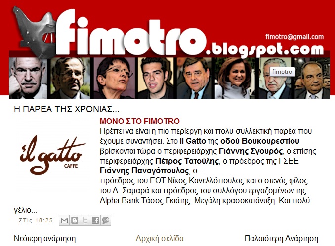 Ανάρτηση για τις Βόλτες και τις Συναντήσεις του Περιφερειάρχη Πελοποννήσου ενώ αγρότες μικρομεσαίες επιχειρήσεις δημόσιοι – ιδιωτικοί υπάλληλοι και άνεργοι σε ολόκληρη την Πελοπόννησο στενάζουν να τα βγάλουν πέρα…. ΜΟΝΟ ΣΤΟ FIMOTRO Πρέπει να είναι η πιο περίεργη και πολυ-συλλεκτική παρέα που έχουμε συναντήσει. Στο il Gatto της οδού Βουκουρεστίου βρίσκονται τώρα ο περιφερειάρχης […]