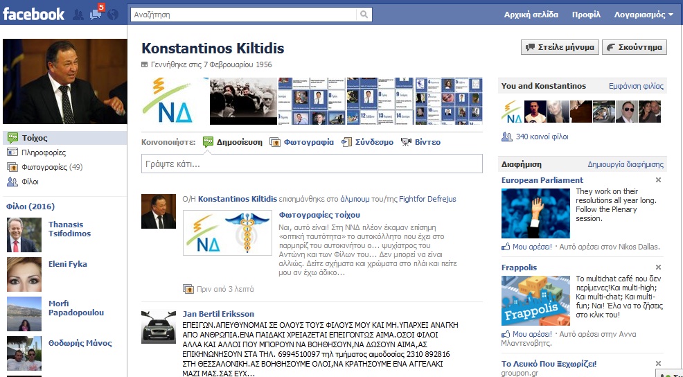 Το μεγάλο «μάτι» του facebook συνέλαβε στο προφίλ του Κώστα Κιλτίδη ο οποίος έχει ενταχθεί στο στρατόπεδο της Δημοκρατικής Συμμαχίας και την Ντόρα Μπακογιάννη να έχει αναρτήσει το νέο σήμα-λογότυπο της Ν.Δ στο προφίλ του… Χάκερ, Προβοκάτσια ή διακαείς πόθος του κ. Κιλτίδη για επιστροφή…???