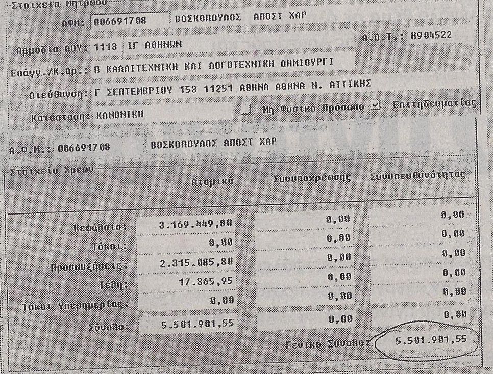 Μετά το αποκαλυπτικό δημοσίευμα της εφημερίδας Ελευθεροτυπίας ο Τόλης Βοσκόπουλος χρωστάει στην εφορία ούτε λίγο ούτε πολύ 5,5 εκατομμύρια ευρώ…. Αυτό το τεράστιο ποσό έχει συσσωρευτεί από το 1993 οπού ο γνωστός καλλιτέχνης έχει να πληρώσει στην εφορία…. Αυτό σαν αποτέλεσμα έχει την παραίτηση της συζύγου του Άντζελας Γκερέκου από την κυβέρνηση και από το […]