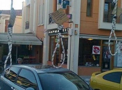 Εννέα κρεμάλες στην κεντρική πλατεία της Κάτω Αχαΐας, είναι από το πρωί… έτοιμες , δια χειρός αγανακτισμένων πολιτών. Η διαφαινόμενη άνευ όρων ψήφιση του πολυνομοσχεδίου, έχει εξοργίσει τους πολίτες που σήμερα μια κρίσιμη ημέρα για το μέλλον των Ελλήνων, δεν διστάζουν ακόμα και με αυτό τον ακραίο τρόπο έκφρασης, να στέλνουν μηνύματα οργής και αγανάκτησης […]