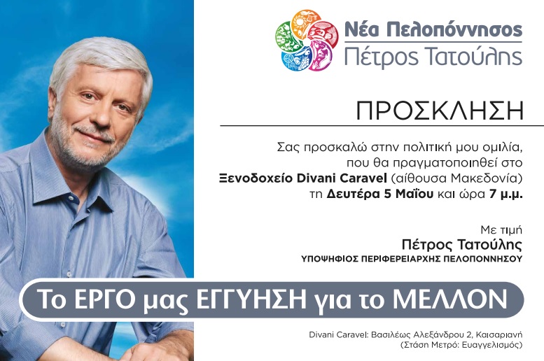 05.03.14 - Επίσκεψη Πέτρου Τατούλη την Κυριακή 4 Μάη στη Λακωνία