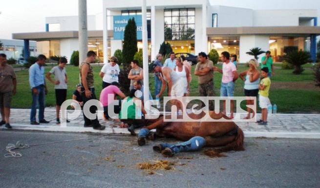 Ένα… ασυνήθιστο περιστατικό συνέβη λίγο πριν τις 9 το βράδυ της Παρασκευής στην Εθνική οδό Πύργου-Πατρών. Πιο συγκεκριμένα ένα άλογο -για άγνωστους λόγους- έπεσε από το όχημα μεταφοράς του πάνω στο οδόστρωμα με αποτέλεσμα τον τραυματισμό του… Στο σημείο έσπευσαν περαστικοί αλλά και φιλόζωοι προκειμένου να παράσχουν τις πρώτες βοήθειες στο τραυματισμένο ζώο… patrisnews.com