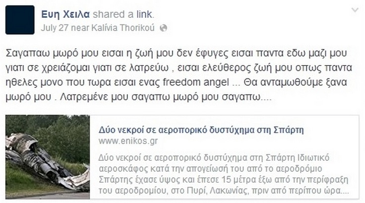 07.31.14 - Το Συγκλονιστικό μήνυμα της Ειρήνης Χειλά για τον αδερφό της που χάθηκε στην Σπάρτη