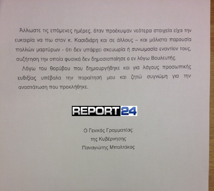 04.02.14 - Δείτε την Παραίτηση Μπαλτάκου.. “Τα περί «σκευωρίας» δεν είχαν σχέση με την πραγματικότητα”