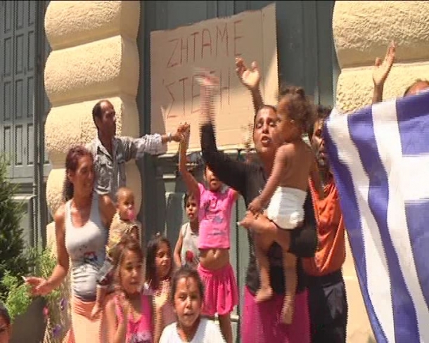 08.01.13 - Έξω από το δημαρχείο της Καλαμάτας κατασκήνωσαν οι τσιγγάνοι..!!