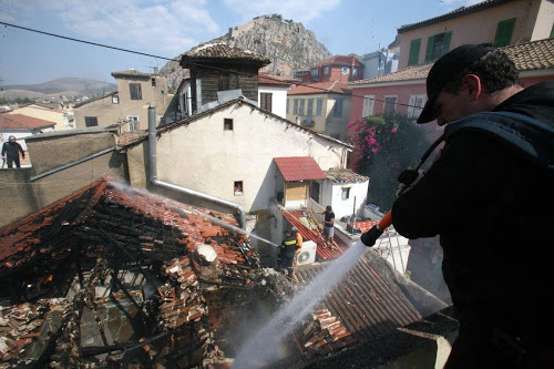 08.13.13 - Μεγάλες ζημιές από φωτιά, σε κτίριο στην παλιά πόλη του Ναυπλίου