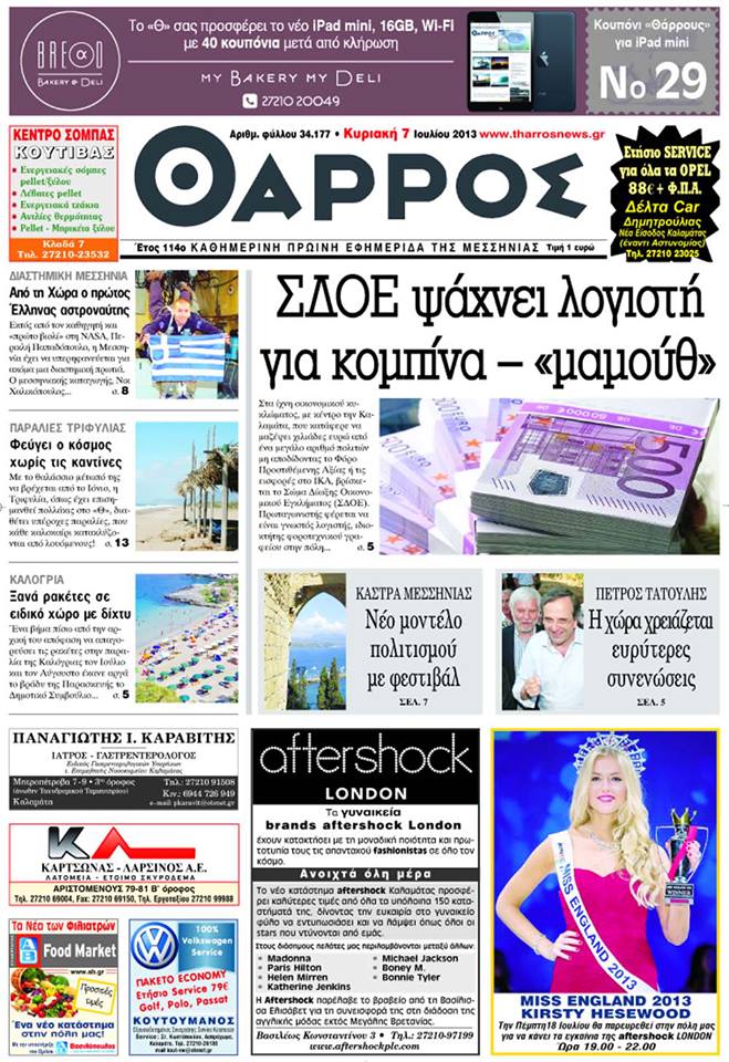 07.08.13 - Η Ασφάλεια Καλαμάτας με εντολή του ΣΔΟΕ, ψάχνει λογιστή για κομπίνα – «μαμούθ»