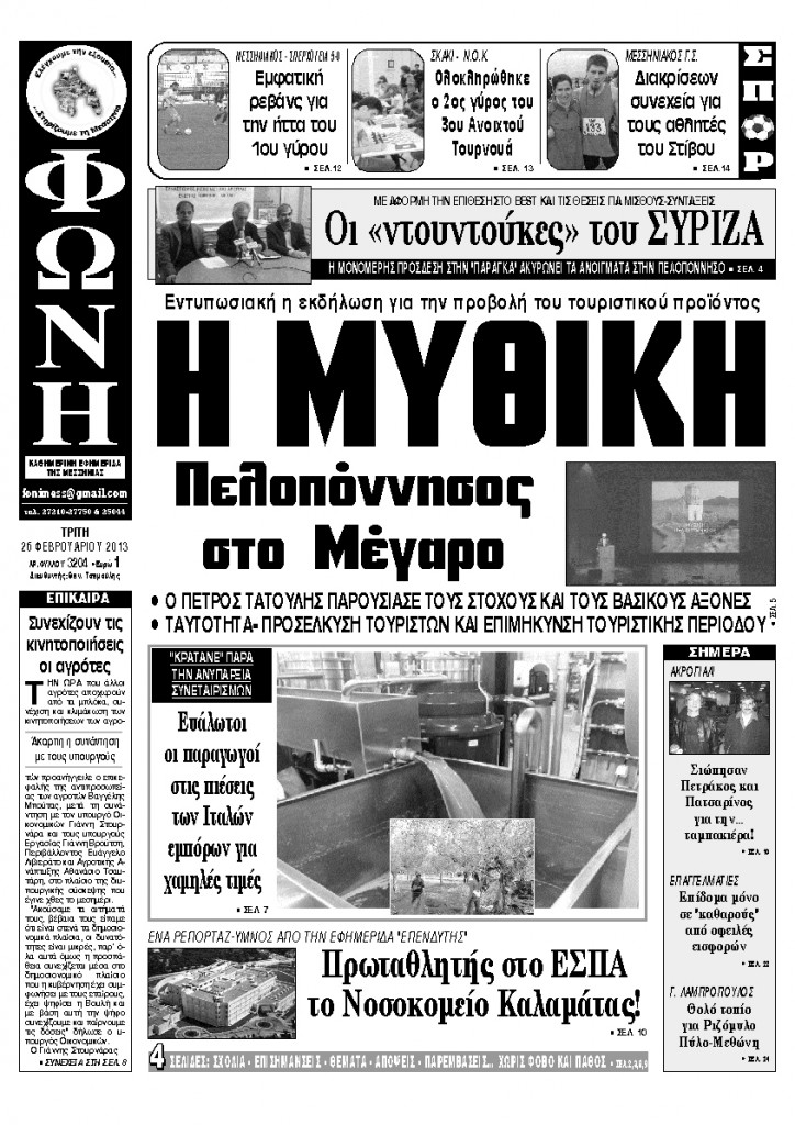 02.26.13 - Τα νέα της Μεσσηνίας με μια Ματιά…