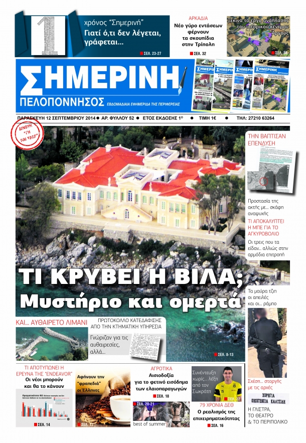 09.14.14 - Διαβάστε στην ΣΗΜΕΡΙΝΗ που κυκλοφορεί… Τι Κρύβει η Βίλα;
