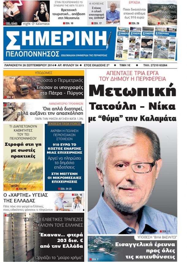 09.25.14 - Διαβάστε στην “Σημερινή” που κυκλοφορεί… Μετωπική Τατούλη – Νίκα