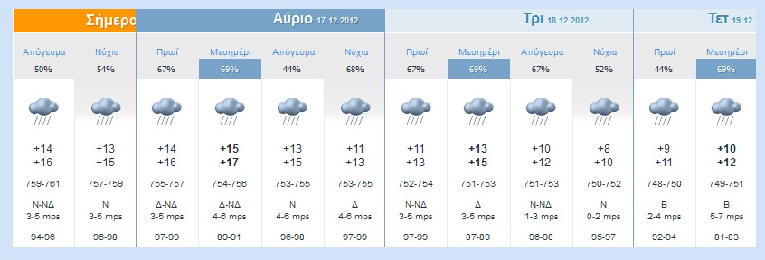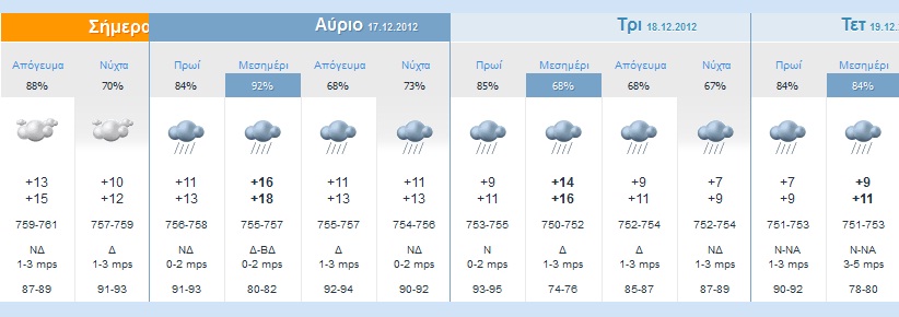 12.16.12 - Ο καιρός στην Καλαμάτα Δευτέρα και Τρίτη