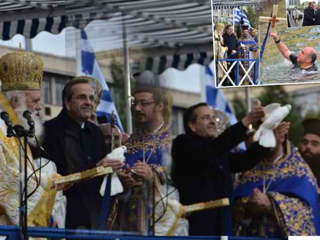 01.06.13 - Στον Πειραιά έκανα Θεοφάνεια ο Αντώνης Σαμαράς παρουσία Ιερώνυμου και Μιχαλολιάκου.