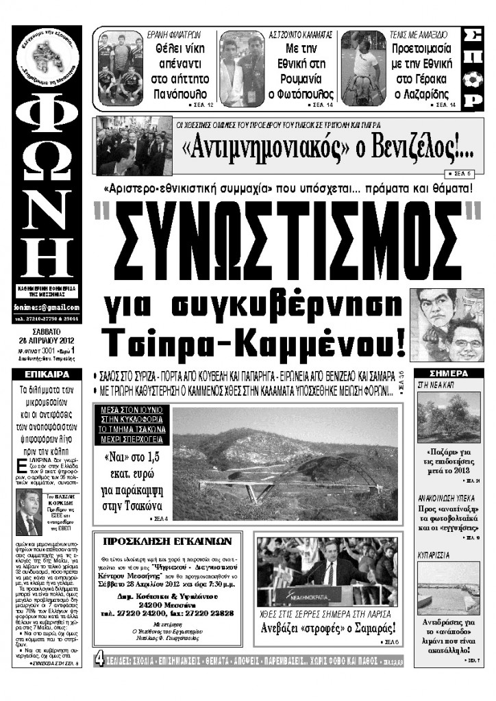 04.27.12 - “Μετεκλογικές συνεργασίες και το πραγματικό δίλημμα των εκλογών..” του Θανάση Τσαμούλη