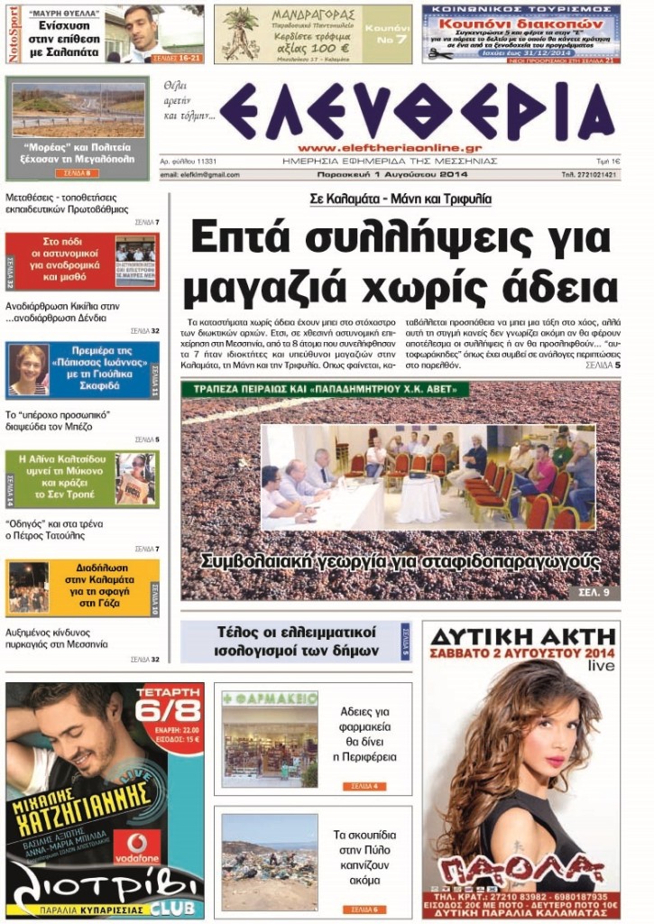08.05.14 - Στην Καλαμάτα πρόστιμα για τις αφίσες Μαρινέλλας… Στη Σπάρτη Αγρόν Αγοράζουμε..!!!