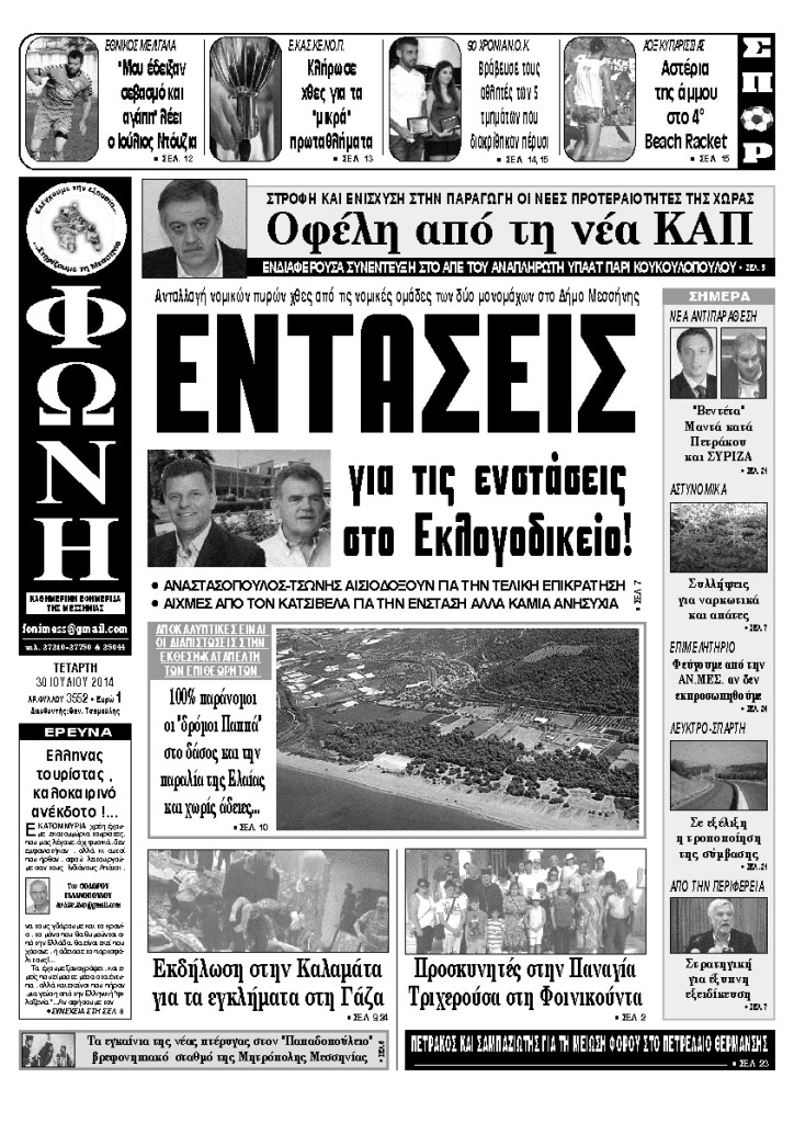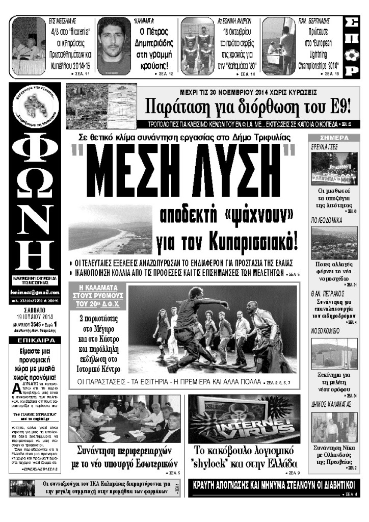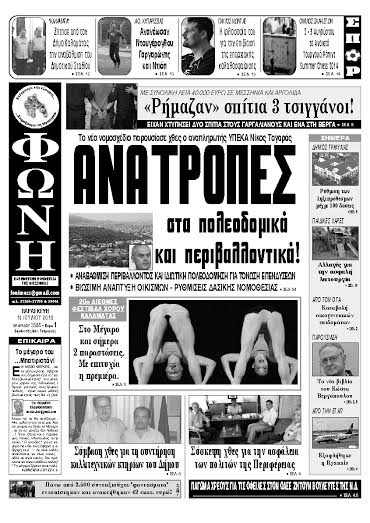 ΑΝΑΤΡΟΠΕΣ στα πολεοδομικά και περιβαλλοντικά! Το νέο νομοσχέδιο παρουσίασε χθες ο Νίκος Ταγαράς – Αναβάθμιση περιβάλλοντος και ιδιωτική πολεοδόμηση για τόνωση επενδύσεων – Βιώσιμη ανάπτυξη οικισμών – Ρυθμίσεις δασικής νομοθεσίας Αυτό είναι το πρώτο θέμα στη σημερινη “ΦΩΝΗ” στην οποία προβάλλονται και τα θέματα: ΔΗΜΟΣ ΤΡΙΦΥΛΙΑΣ: Ρύθμιση των ληξιπρόθεσμων μέχρι 100 δόσεις. ΠΑΙΔΙΚΕΣ ΧΑΡΕΣ: Αλλαγές […]