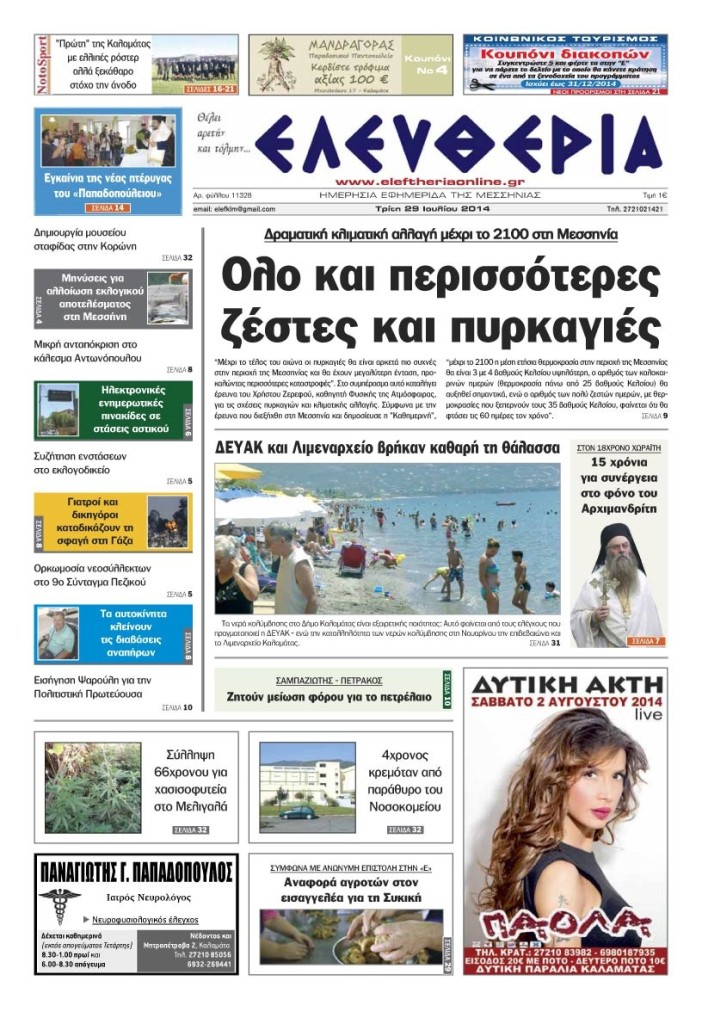 Σας προσκαλούμε στο Ιερό Μνημόσυνο για τους Έλληνες και τους Κυπρίους, που έπεσαν κατά το πραξικόπημα και την τουρκική εισβολή στην Κύπρο το 1974, το οποίο θα τελέσει ο Δήμος Καλαμάτας, την Κυριακή 20 Ιουλίου 2014 και ώρα10.00 π.μ., στο Μητροπολιτικό Ιερό Ναό της Υπαπαντής του Χριστού.