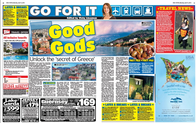 04.14.14 - Η «Μυθική Πελοπόννησος» στη μεγάλη Βρετανική εφημερίδα.. Daily Star Sunday