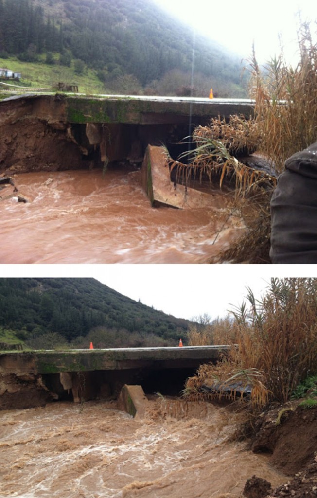 01.26.13 - Ξεχείλισε ο ποταμός στην Κλειτορία Αχαΐας – Κατέρρευσε η γέφυρα
