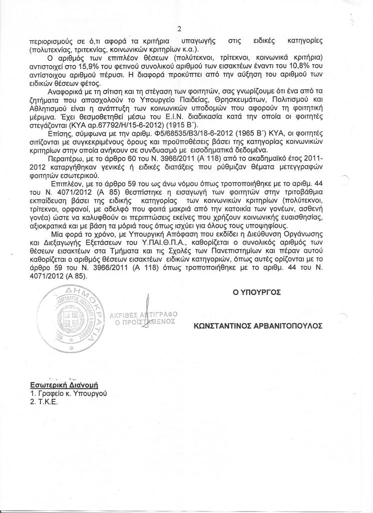 10.09.12 - Απάντηση Αρβανιτόπουλου σχετικά με προβλήματα φοίτησης παιδιών πολυμελών οικογενειών σε ερώτηση Πατριανάκου