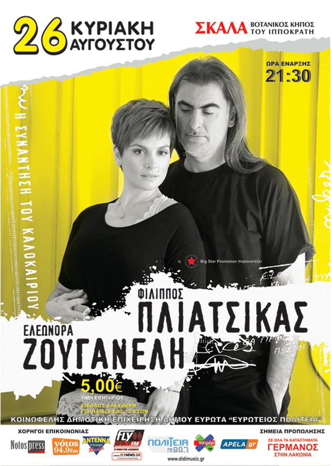 Σας προσκαλούμε την Κυριακή 26 Αυγούστου και ώρα 21:00 στον Βοτανικό Κήπο του Ιπποκράτη στην Σκάλα για να υποδεχτούμε την Φλόγα της Αγάπης των Εθελοντών Αιμοδοτών του Δήμου Ευρώτα. Η βραδιά θα κλείσει με την μοναδική συναυλία του φετινού καλοκαιριού των Φίλιππου Πλίατσικα και της Ελεωνόρας Ζουγανέλη. Τιμή Εισιτηρίου 5,00 Ευρώ Προπώληση: Καταστήματα Γερμανός της […]