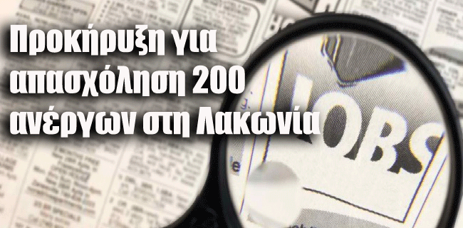 07.11.12 - Προκήρυξη για απασχόληση 200 ανέργων στη Λακωνία