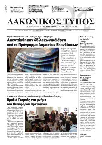 ΔΕΛΤΙΟ ΤΥΠΟΥ ΤΟ Δ.Σ. ΤΟΥ ΣΥΛΛΟΓΟΥ ΤΡΙΤΕΚΝΩΝ Ν.ΛΑΚΩΝΙΑΣ, ‘’ΟΙ ΛΑΚΩΝΕΣ’’, ΣΑΣ ΕΝΗΜΕΡΩΝΕΙ ΟΤΙ ΤΟ ΓΡΑΦΕΙΟ ΤΟΥ ΣΥΛΛΟΓΟΥ ΜΑΣ ΛΕΙΤΟΥΡΓΕΙ ΠΡΟΣΩΡΙΝΑ ΣΤΗΝ ΟΔΟ ΕΥΑΓΓΕΛΙΣΤΡΙΑΣ 85-87 (ΚΑΤΩ ΑΠO ΤΟ ΓΡΑΦΕΙΟ ΤΟΥ ΔΗΜΑΡΧΟΥ). ΤΟ ΩΡΑΡΙΟ ΛΕΙΤΟΥΡΓΙΑΣ ΘΑ ΕΙΝΑΙ ΚΑΘΕ ΤΕΤΑΡΤΗ 6-8μ.μ ΓΙΑ ΕΓΓΡΑΦΕΣ ΚΑΙ ΕΝΗΜΕΡΩΣΕΙΣ. ΠΡΟΣΟΧΗ ΑΠΟ ΤΗΝ ΠΑΡΑΣΚΕΥΗ 01/06/12 ΜΕΧΡΙ ΚΑΙ ΤΗΝ ΠΑΡΑΣΚΕΥΗ 08/06/12 ΚΑΙ ΓΙΑ ΤΙΣ […]