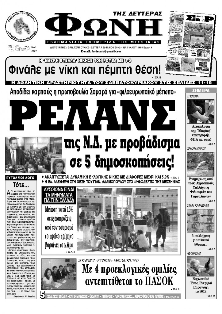 05.28.12 - Την Τρίτη συνεδριάζει η ΝΟΔΕ Λακωνίας για τις εκλογές