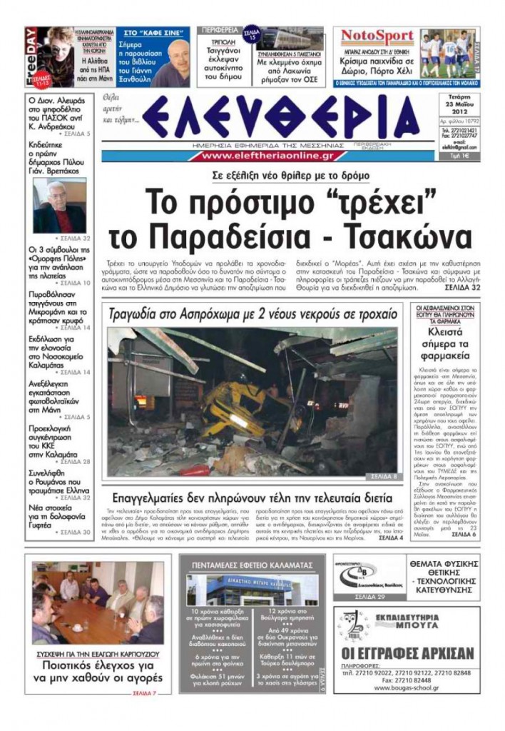 05.25.12 - Νεκρός ο πατέρας και τραυματίας ο γιός σε τροχαίο στην Κυπαρισσία