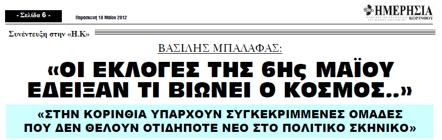 05.24.12 - Βασίλης Μπαλάφας: «Οι εκλογές της 6ης Μαΐου έδειξαν τι βιώνει ο κόσμος»