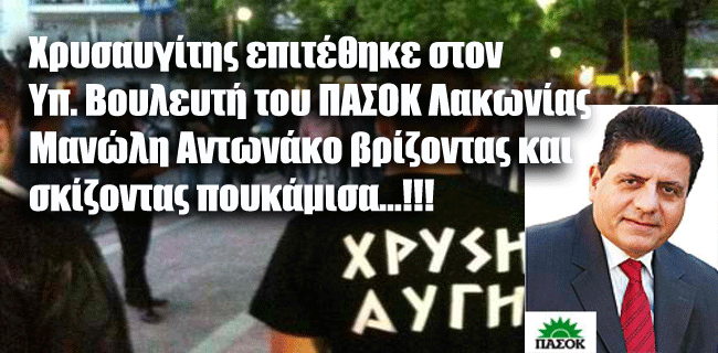 05.03.12 - Χρυσαυγίτης επιτέθηκε στον υπ. Βουλευτή του ΠΑΣΟΚ Λακωνίας Μανώλη Αντωνάκο βρίζοντας και σκίζοντας πουκάμισα…!!!