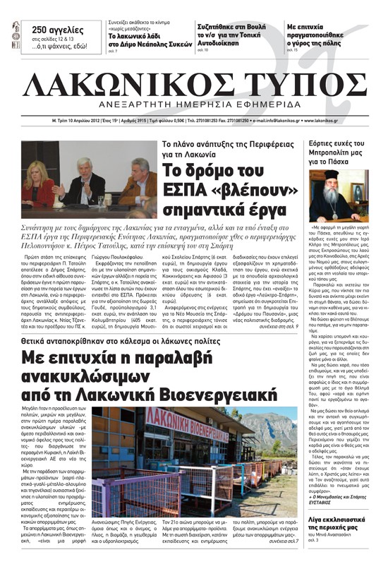 04.10.12 - Το πλάνο ανάπτυξης της Περιφέρειας για τη Λακωνία