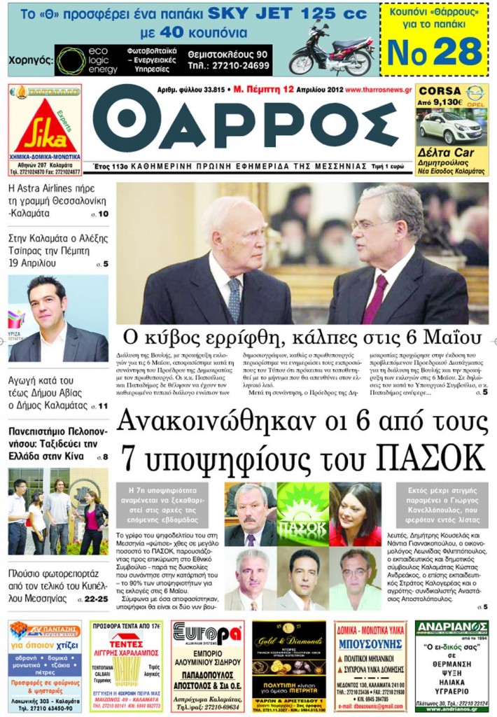 04.12.12 - Ανακοινώθηκαν οι 6 από τους 7 υποψηφίους του ΠΑΣΟΚ στην Μεσσηνία